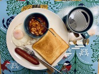 原先焗左成條腸,但諗諗下尋晚先打完邊爐,今日再整條咁 heavy metal 既腸好似有d過份,食之前切走半條留俾 E
