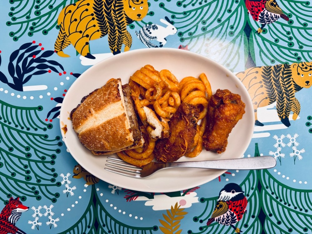 一夠鐘就收工,買咗一個大滿足嘅晚餐,包括有招財牛堡、2 個花椒脆香雞翼同扭扭薯條,feeling I am the king of the world