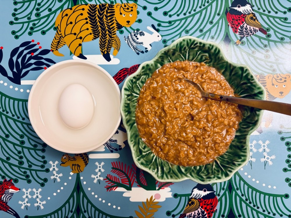 早餐係加咗馬莎朱古力嘅咖啡麥皮,決定食完呢包麥皮之後就收皮,都係麵包好食啲