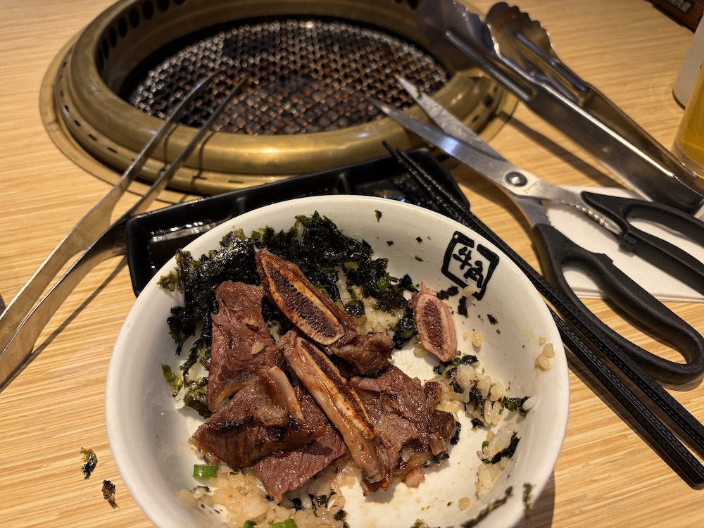 但個有骨肋肉好韌,我勉強食咗一塊,決定都係問店員拎鉸剪,一開三,易咬好多