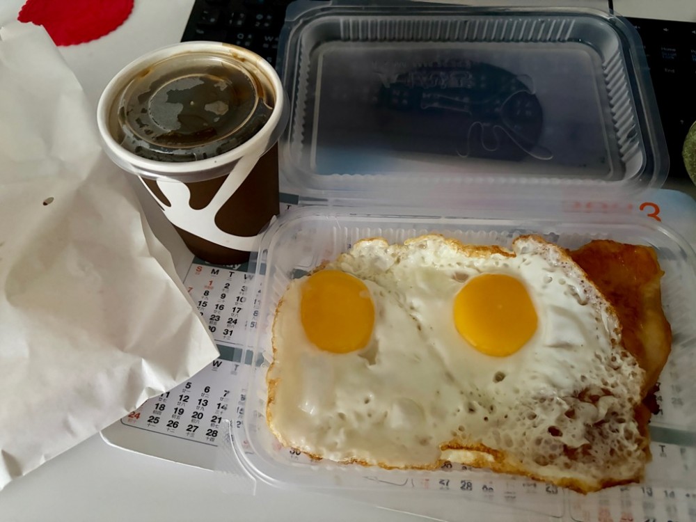昏暗中早餐,返到公司嘅時間有啲尷尬,決定打咗卡先