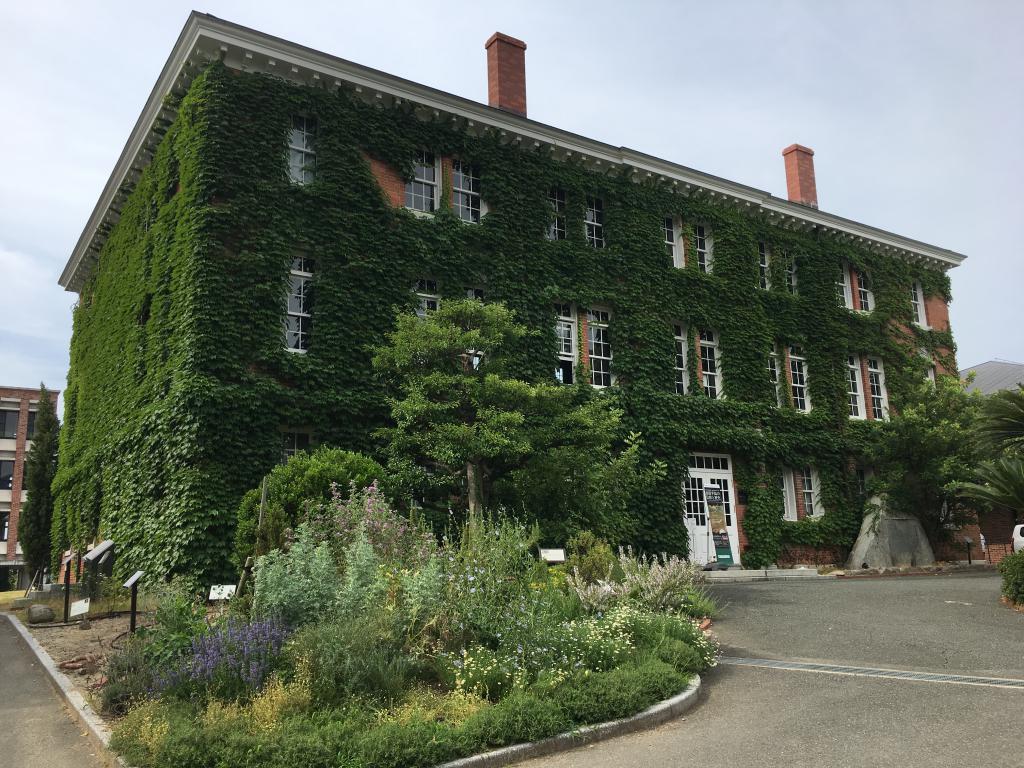 見到一橦好靚嘅建築物,呢個係背面,西南學院大學博物館