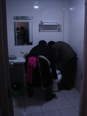 佢地o係度做d咩? 睇下鏡入面o個兩個人...其實兩位黑衣人係草根的人員, 沒有廁所水喇...
