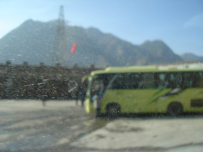 上車了, 8:00出發的車。早上大霧的很, 睡睡醒醒之間, E跟我說: 高速封了, 要走其他路。下? 本來已經是10小時的車了, 現在...