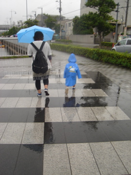 逛到一半, 下大雨了, 可愛的日本小朋友, 超愛他們的雨衣, kawai呢~ 然後要去紅磚倉庫及逛海邊的念頭也打消了