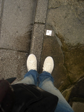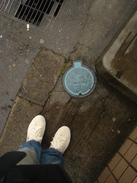 到了光之島了, 一下車, 噢! 噢! 噢! 動漫中的馬路耶!! 我一直很想過一條這樣的路, 不過並不是在天氣好得連看東西扭曲的一天......好可惜。