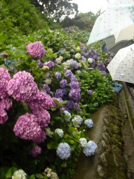 我們在長谷下車的見標是成就寺, 沒錯, 又是寺, 不過很巧地, 由於現在是八仙花(上網查的, 好「聳」的名字哦......)盛開的時侯, 周圍都是在邀請別人去成就寺觀賞的POSTER, 一去到, 超大雨但也超多人的