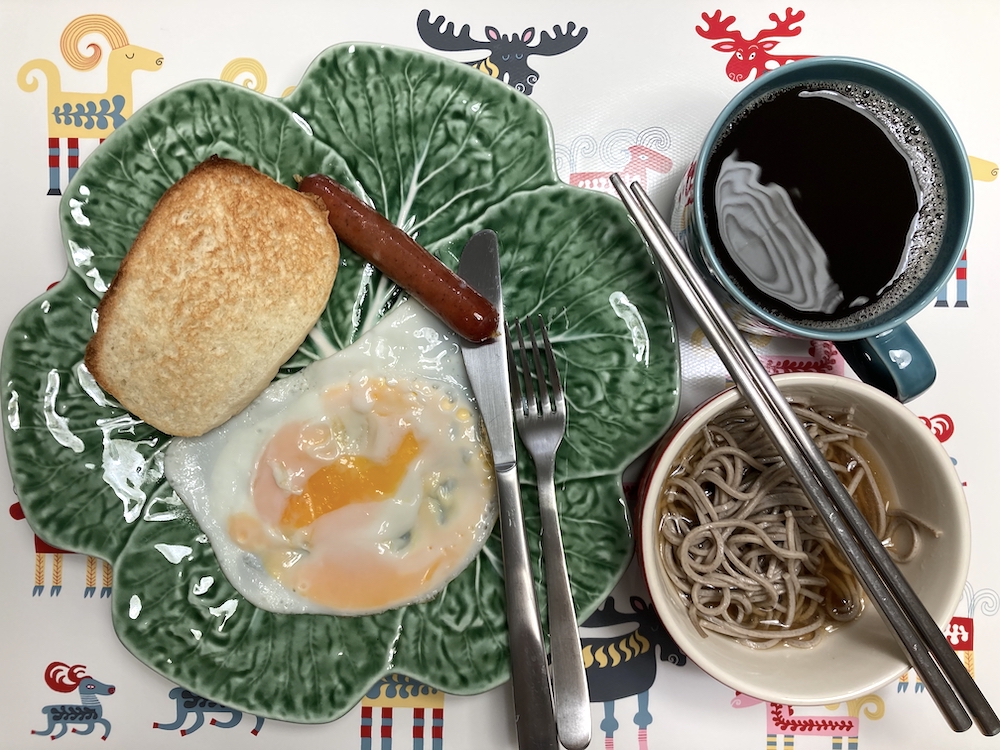 星期日晚食剩幾啖蕎麥麵,今日早餐食埋佢