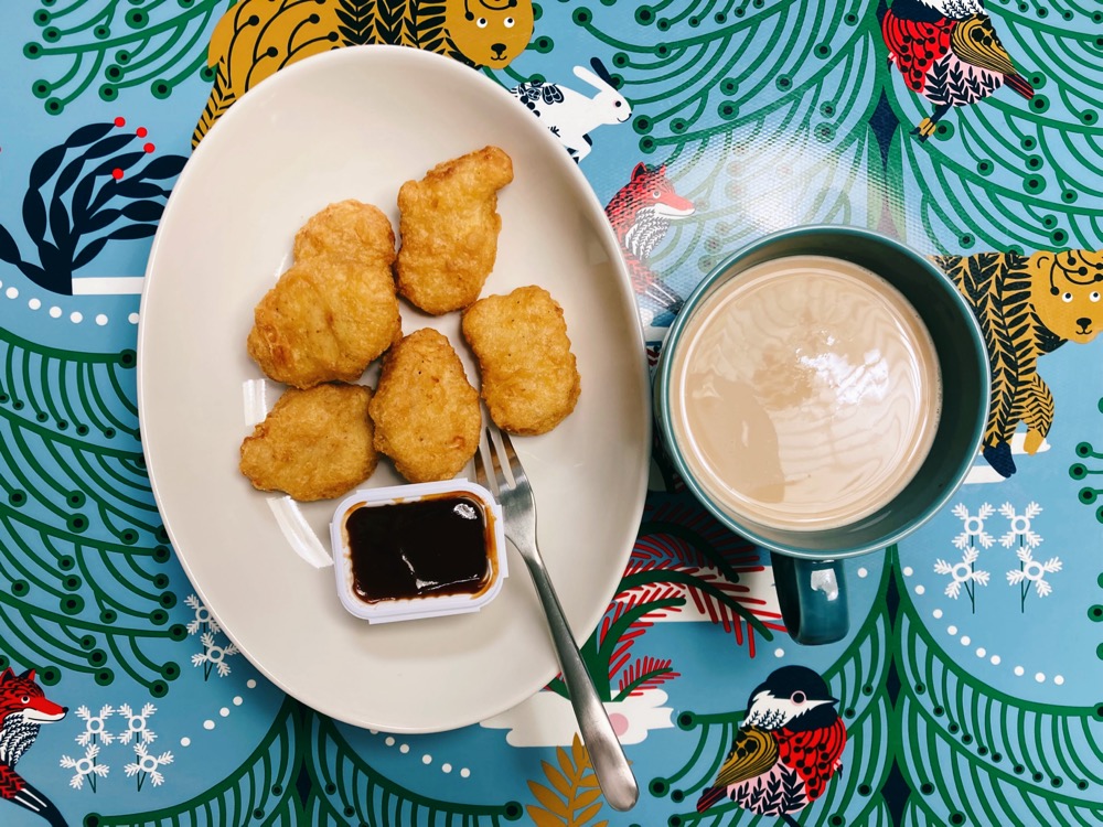 搭緊地鐵時買咗雞餐券,晚餐就係9件麥落雞餐薯條轉蘋果批同奶茶。